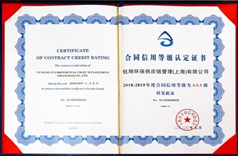 日前,鈺翔控股集團(tuán)旗下鈺翔環(huán)保供應(yīng)鏈管理(上海)有限公司、上海久源經(jīng)貿(mào)發(fā)展有限公司被評(píng)為“2018-2019年度上海市守合同重信用企業(yè)”,并榮獲AAA級(jí)合同信用等級(jí)認(rèn)定。